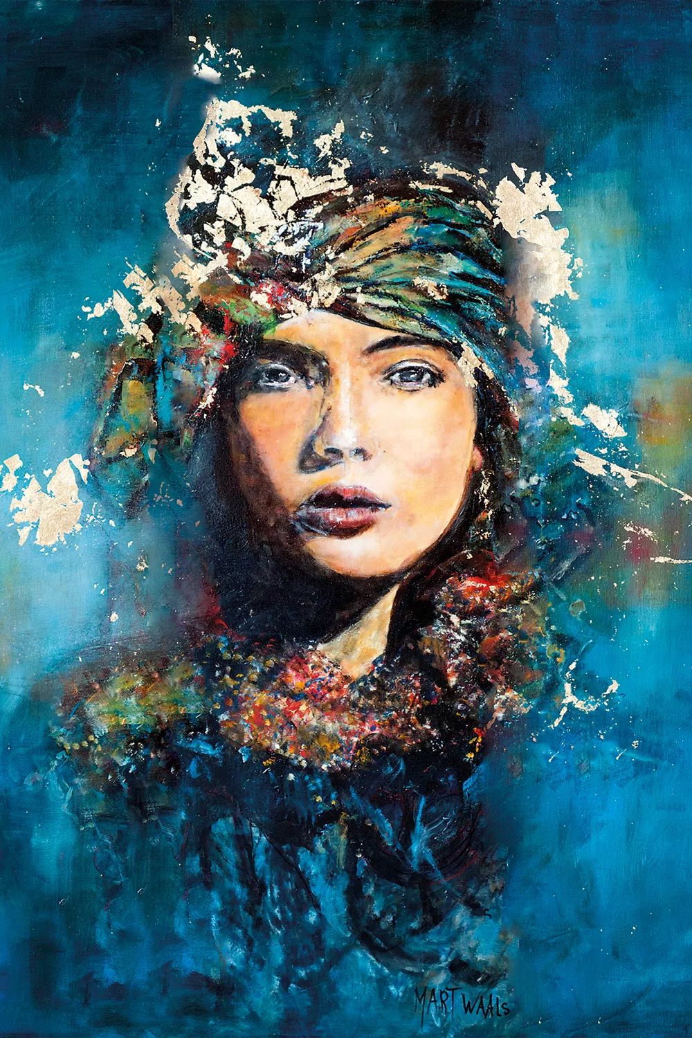 Martje Waals was born in the Netherlands, in the province of Brabant. After many years of owning a fashion store, she has developed a strong sense of style and color. She has a particular love for vibrant colors, portraits, and flowers, and has explored various artistic styles over the years. She enjoys working with a variety of materials to challenge herself creatively, often combining acrylic paint, watercolor, and oil paint to create beautiful color variations. With accents of gold or silver, she adds an extra dimension to her artworks. Additionally, she loves to share her knowledge and passion for painting in her classes.